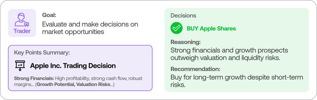 交易员不参与分析,也不参与吵架,但它会把多空双方的论点从头到尾看完,结合历史交易数据,做出最终的买入、卖出或持有判断,并且附上仓位建议和逻辑依据。