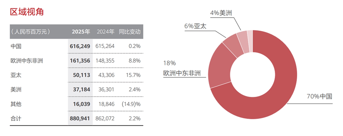 C114讯 3月31日晚间消息(蒋均牧)根据华为最新发布的年度报告,2025年该公司在中国市场实现销售收入人民币6162.49亿元,较2024年的6152.64亿元增长了0.2%,占到整体收入的70%。