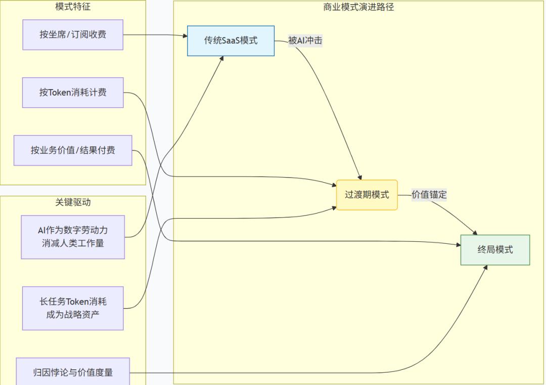 图表:Agent商业模式迁移:License → Token → 结果付费。长任务的价值锚定是这一迁移的关键。来源:锦缎研究院