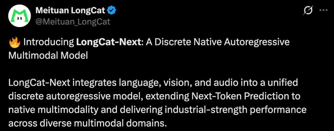 近日,美团发布了一项颇具分量的多模态研究成果 ——LongCat-Next。