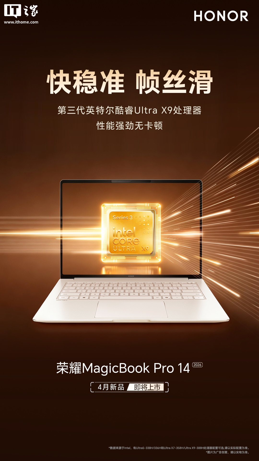 另外,根据此前官方公布的信息,2026 款 MagicBook Pro 系列搭载第三代英特尔酷睿 Ultra 处理器,可选型号包括 Ultra 5 338H、Ultra X7 358H、Ultra X9 388H,性能释放最高可达 88W。