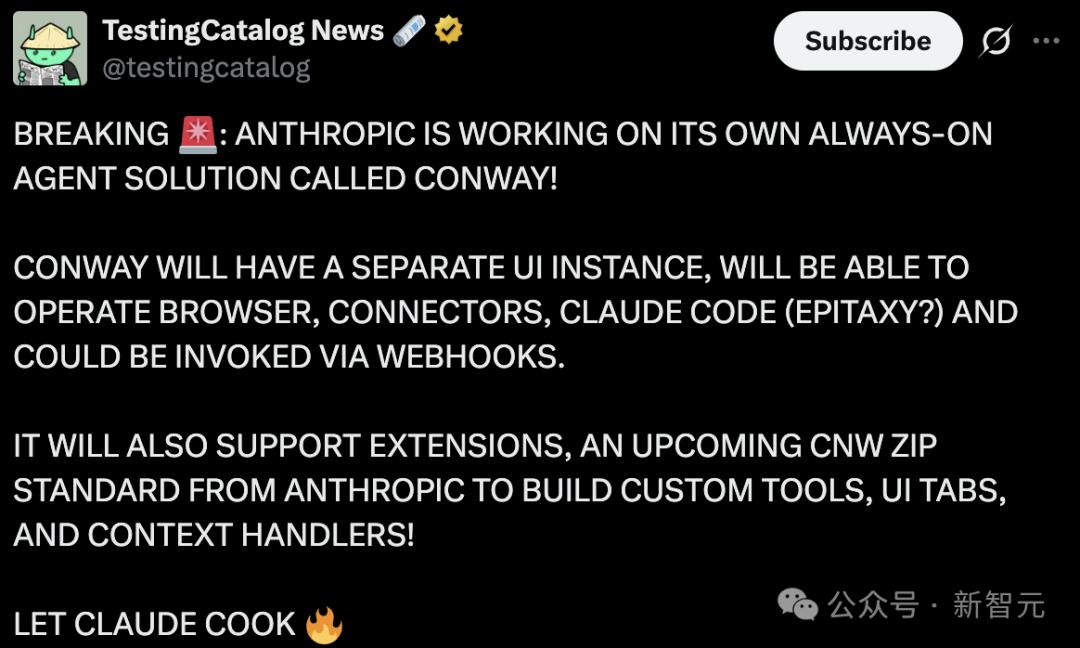 就在今天,消息人士爆出:Anthropic正在秘密测试核弹级产品——「永久在线」(Always-On)智能体Conway。