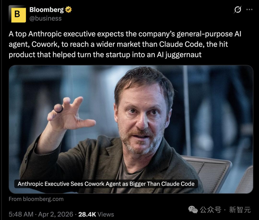 https://www.bloomberg.com/news/articles/2026-04-01/anthropic-executive-sees-cowork-agent-as-bigger-than-claude-code