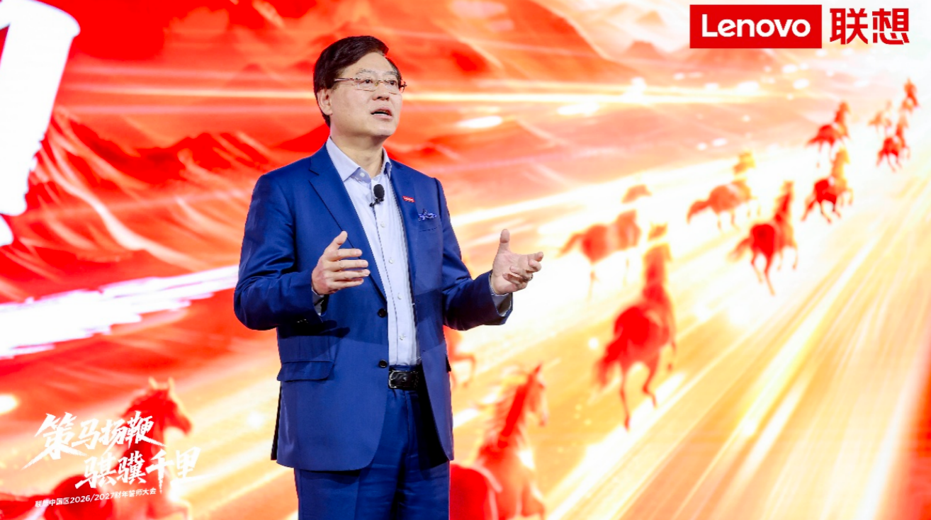 凤凰网科技讯 4月2日,联想集团董事长兼CEO杨元庆昨日在2026/27财年誓师大会上披露,联想中国区2025/26财年前三财季营收和利润同比分别增长20%和30%以上,营收创历史新高。非PC业务收入占比已接近50%,AI PC全年销量突破253万台,推动PC销售额市场份额达42.8%的历史高位。