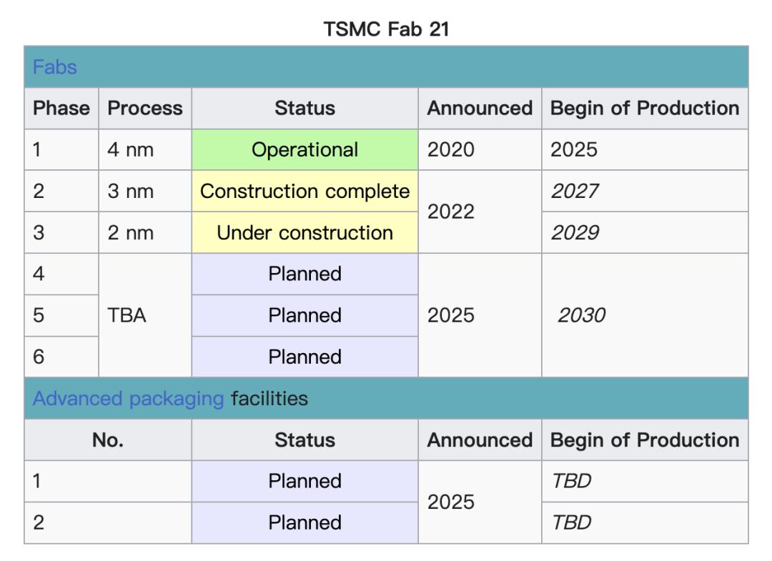 首个晶圆厂:采用 N4 工艺技术的大规模生产将于 2024 年第四季度开始。