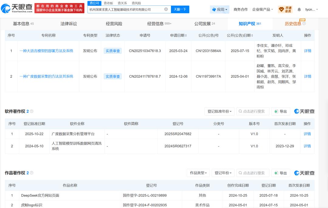 据天眼查平台信息显示,DeepSeek关联主体在人工智能算法研发与算力基础设施方向持续加码布局,相关技术投入与产业协同正在不断强化。