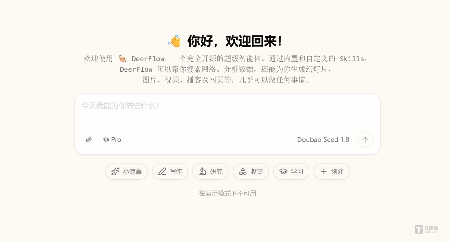 从实际使用来看,DeerFlow 2.0的实用、开放、安全特性,能为AI智能助手的开发和落地提供参考,随着更多开发者参与优化,其落地体验也会进一步提升。(本文首发钛媒体APP,作者 | AGI-Signal,编辑 | 赵虹宇)