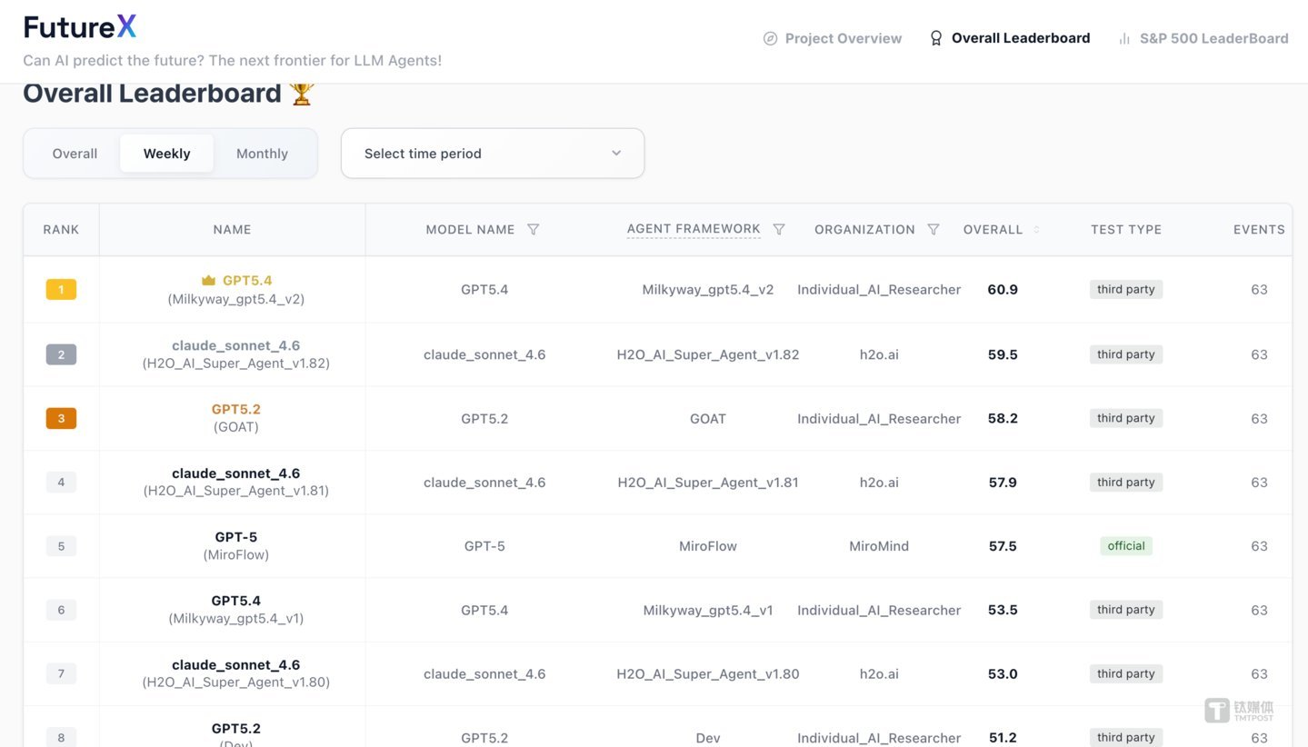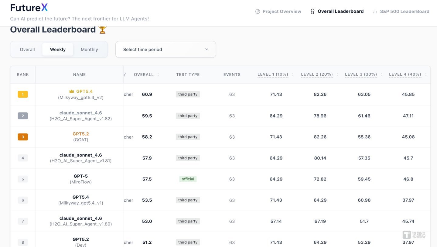 2026年3月29日,一份名为FutureX的全球动态评测榜单刷新了成绩。北京中关村学院信息智能团队自主研发的智能体系统Milkyway,以60.9分的绝对优势霸榜!