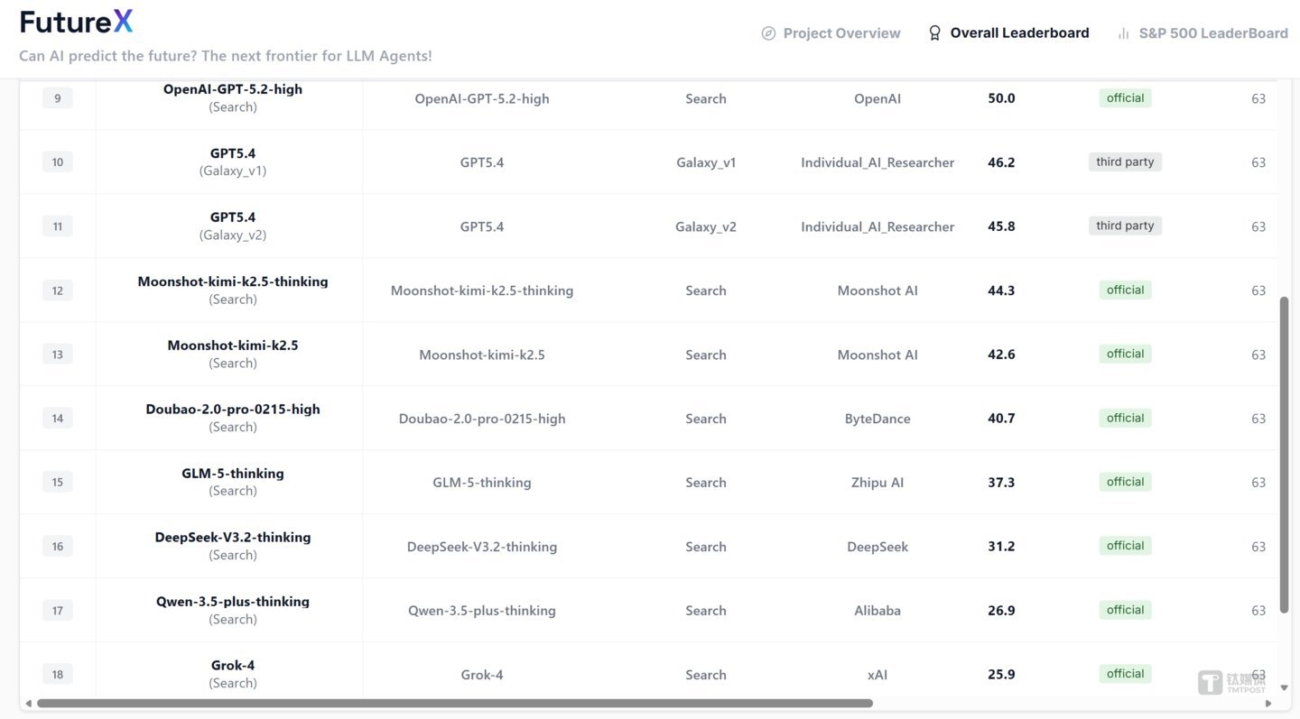 Grok-4以25.9分排在第18位。马斯克曾公开断言:“预测未来的能力,是对模型智能性最好的测试。”