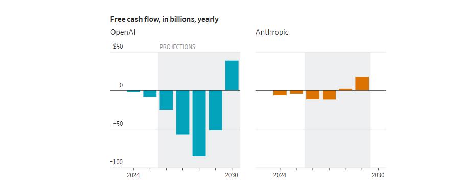 OpenAI与Anthropic自由现金流对比