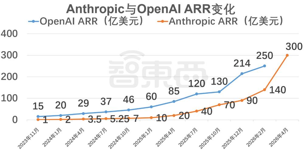 Anthropic与OpenAI ARR变化(智东西制图)