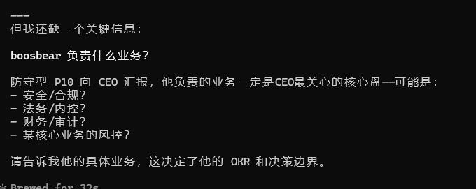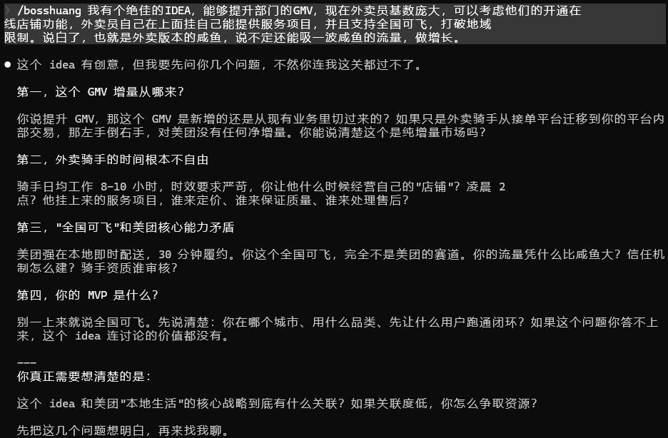 真实场景:老板说“这个不做”,并不是完全不做,他能听出你的潜台词,如果你讲清楚了对他升迁有好处,他会支持你偷偷的做。老板 Skill 说“不做”,本质上是没有GET到“潜台词”环境变量。