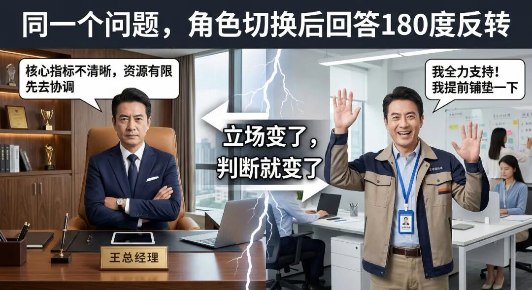 1. 换位测试:如果是老板的老板提出的问题会怎么判断?如果答案不一样 → 这是立场判断