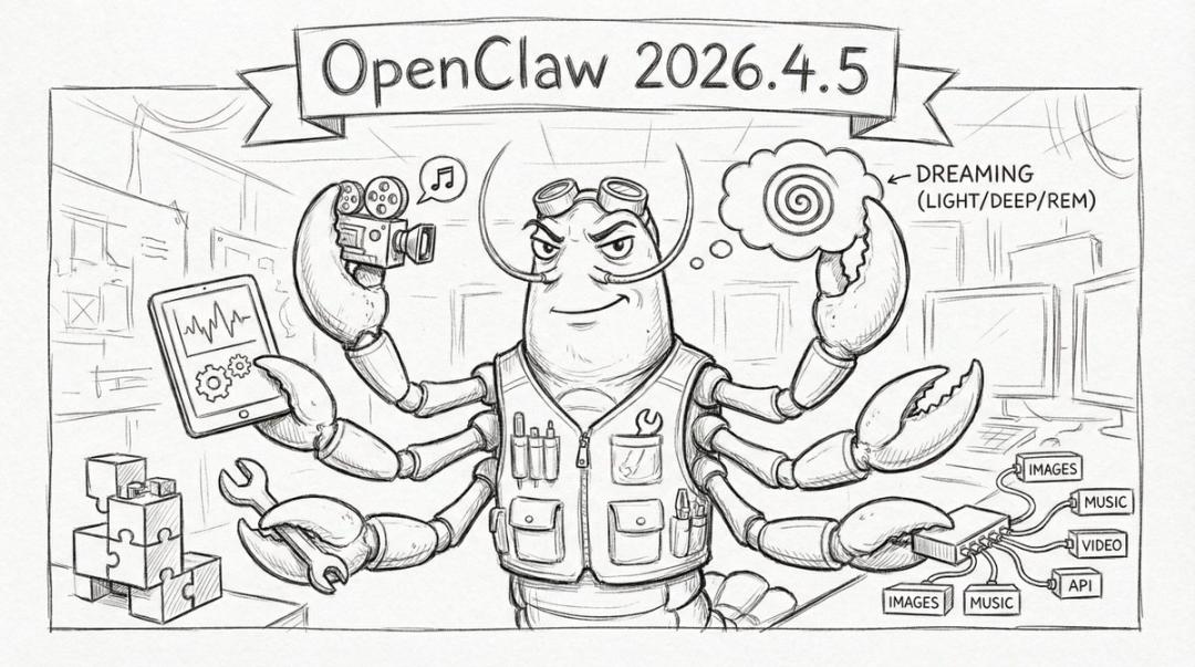 2026.4.5版本,是OpenClaw历史上功能最密集的版本之一,涵盖从内容生成到记忆系统的全面升级。
