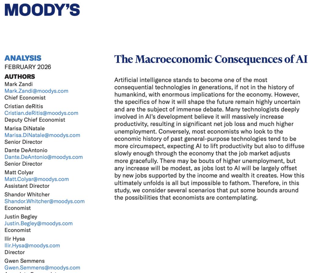 穆迪预测了一个泡沫破裂剧本:2026年某季度,AI收入增速一旦不及预期,恐慌性抛售将导致股市暴跌25%,蒸发20万亿美元。