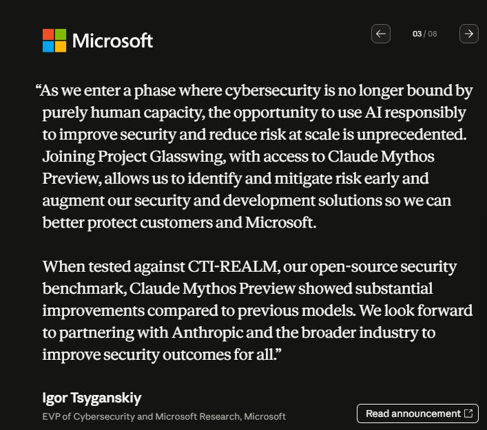 在系统层面,从微软和谷歌的投入表明,网络安全将不再受限于“人力瓶颈”。微软网络安全与微软研究院执行副总裁伊戈尔·齐甘斯基(Igor Tsyganskiy)表示,通过Mythos,微软可以在其庞大的代码库被恶意利用前,预先识别并降低风险。