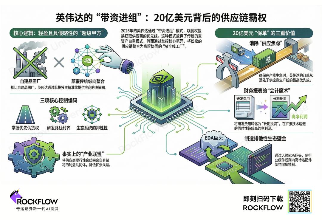 ① 英伟达正以“20 亿美元”为标准筹码,在全球 AI 产业发起一场史无前例的“股权招安”。它不再通过传统的并购扩张,而是利用庞大的资产负债表“带资进组”,直接买入供应商的未来。