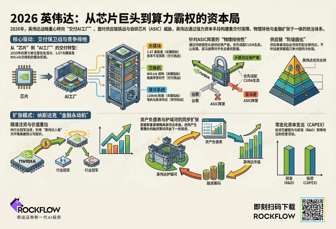英伟达的支票厚度为何总是如此一致?这种“定金”发放速度为何在 2026 年按周计算?RockFlow 投研团队认为,以下三点显得尤为重要。