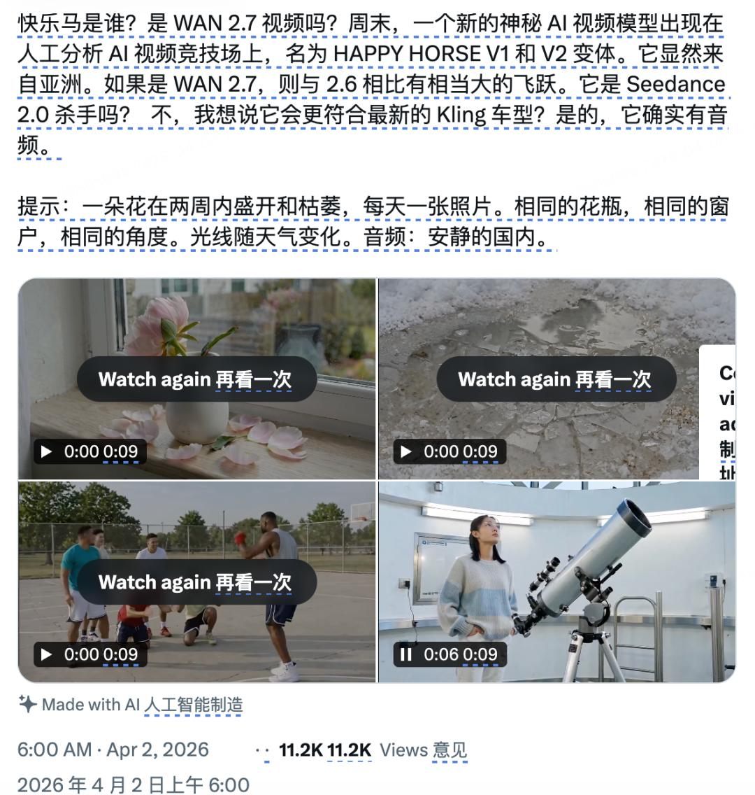 HappyHorse的神秘之所以能引发这么大的震动,是因为在社交场内,围绕AI的讨论,太缺少新鲜感了。