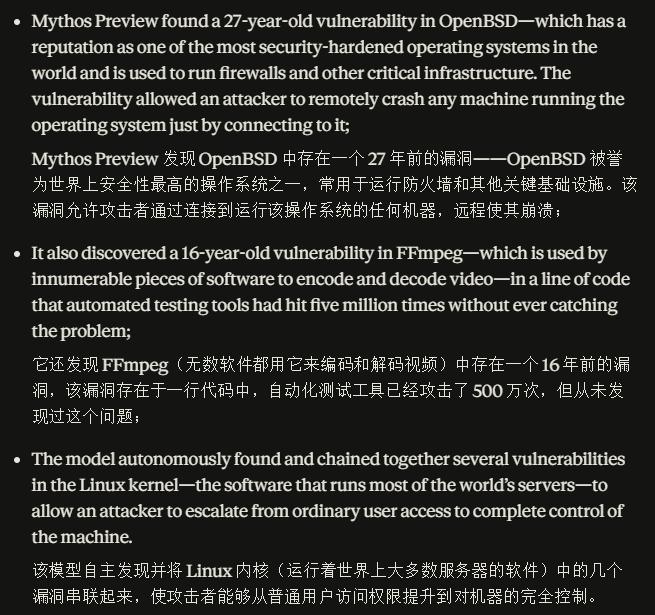 第一个就是,Mythos 在 OpenBSD 里,找到了一个 1998 年的远古漏洞。