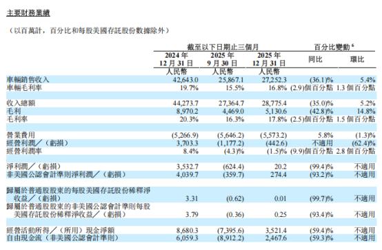 不久前发布的财报数据,或从侧面揭示了这种增长背后的成本。2025年第四季度营收288亿元,同比下降35.0%;净利润2020万元,同比下降99.4%。2025年全年营收1123亿元,同比下降22.3%;净利润11.39亿元,同比下降85.8%。