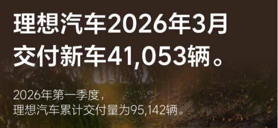 一季度,理想汽车共交付9.51万辆,超过了此前公布的9万辆交付指引上限。