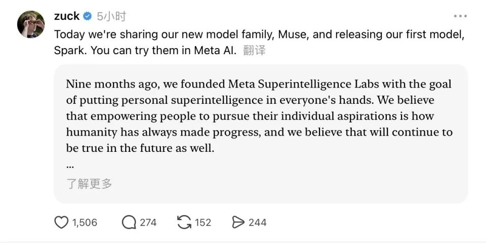 回到九个月前那个艰难的起点,Meta用Muse Spark证明了两件事:技术栈在有效扩展,组织在重建之后重新凝聚了方向。
