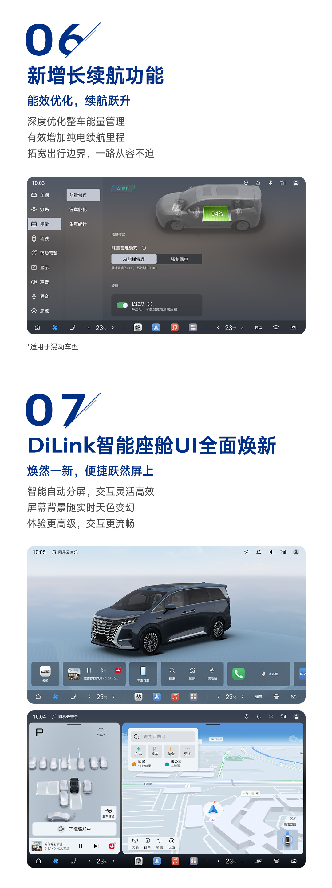 • 新增长续航功能:深度优化整车能量管理,增加纯电续航里程;