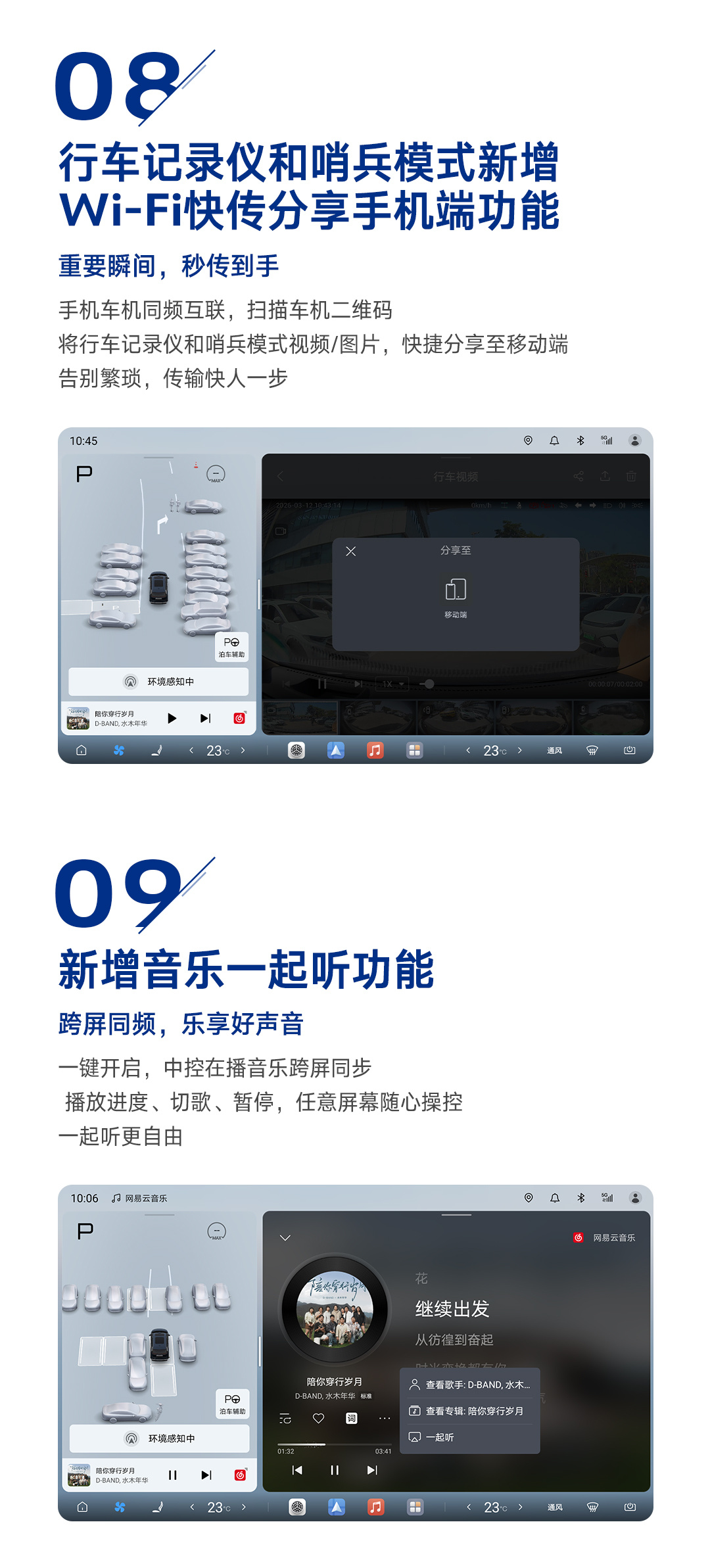 • 行车记录仪和哨兵模式新增 Wi-Fi 快传分享手机端功能