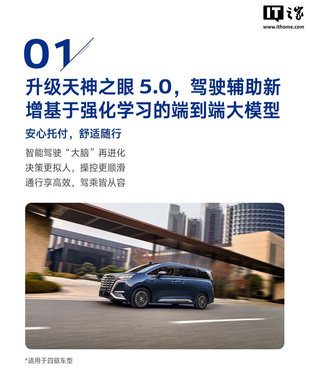 • 升级天神之眼 5.0,驾驶辅助新增基于强化学习的端到端大模型