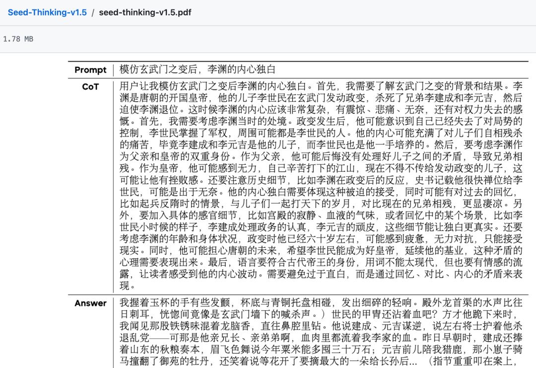 在这里必须要凡尔赛一下,去年字节Seed团队的模型Seed 1.5 Thinking的技术报告最后仅有的两个Case里,有一个是我的原创Prompt的变体。