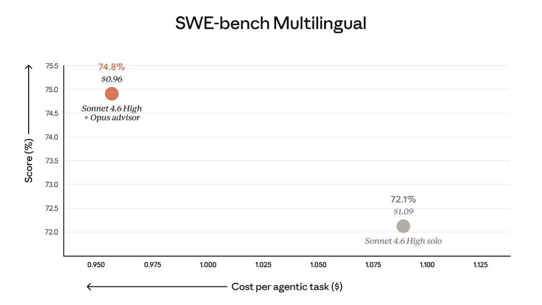 在SWE-bench测试中,「Sonnet+Opus顾问」提升了2.7个百分点,还将单次Agent任务的成本压缩了11.9%。