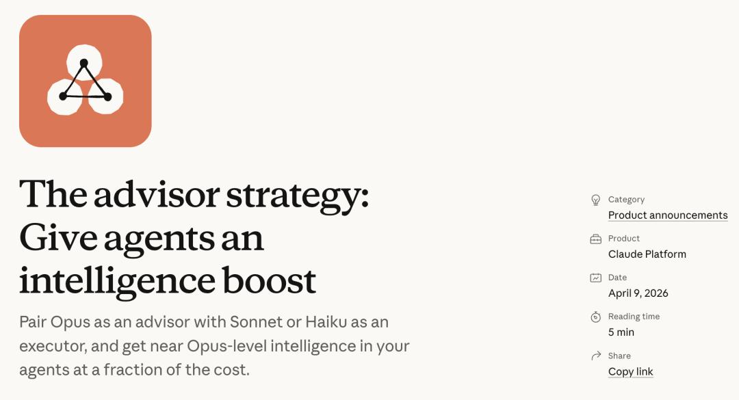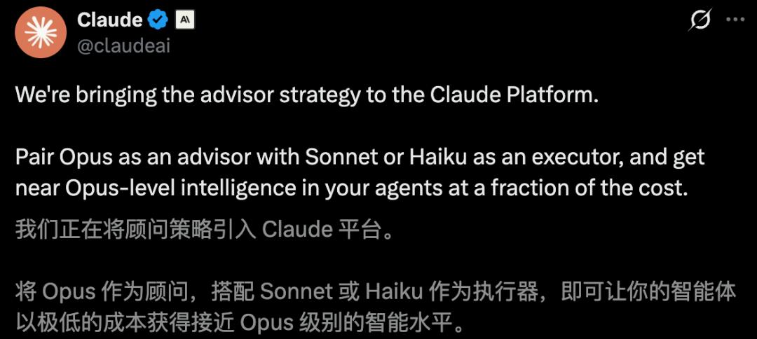 深夜,Anthropic官宣重磅更新:Claude「顾问策略」(Advisor Strategy)上线。