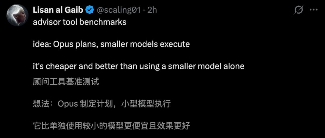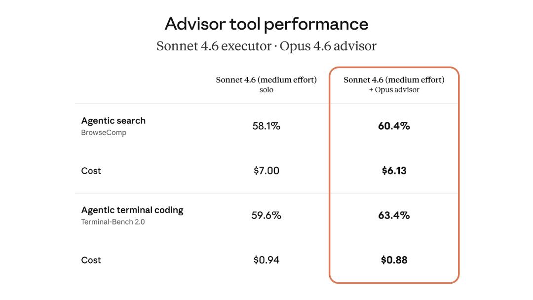 这能让AI Agent拥有接Opus级别的智能,同时让token开销保持在接近Sonnet的水平。