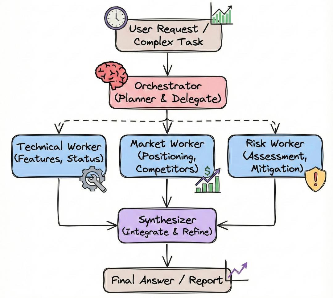传统模式的做法是,让性能最强的LLM坐镇中央当「编排者」,把大任务拆解成若干子任务,再分发给更小、更快的模型去执行。