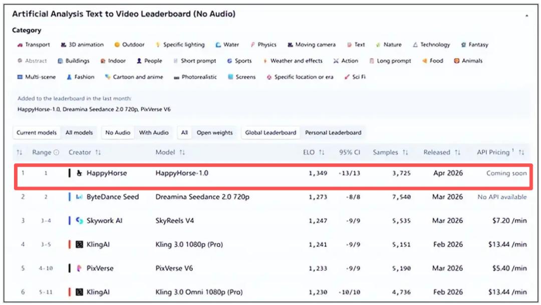 没有预告,没有论文,没有官方账号,一个名为HappyHorse(快乐马)的神秘视频生成模型在海外评测平台Artificial Analysis登顶,成为新的技术王座。