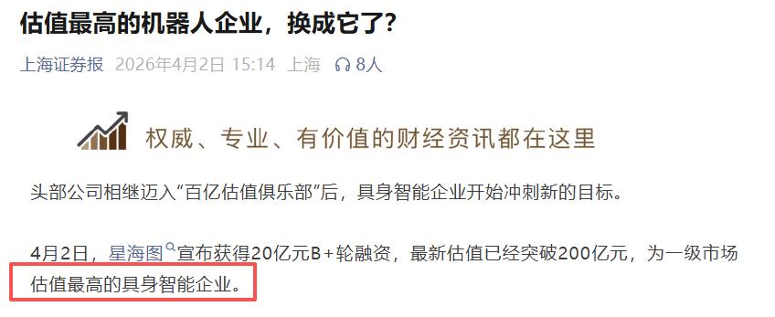 短短两个月,估值原地翻倍,以至于《上海证券报》直接给它贴上了“一级市场估值最高具身智能企业”的标签。