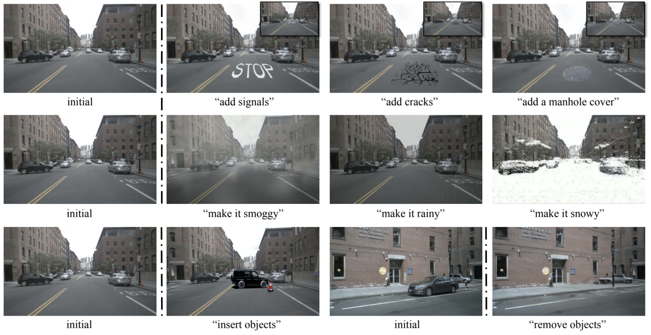 4. 场景数据合成与重建难题:高质量、多样化的驾驶场景数据对智能驾驶系统训练测试至关重要。常规方法(NeRF、3DGS)在动态大范围场景中重建精度低、成本高、编辑能力弱,难以高效合成复杂或稀有场景。