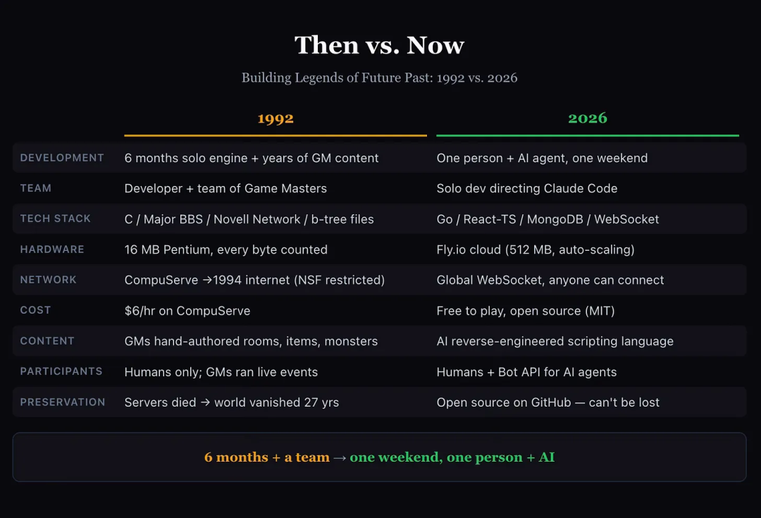 发帖人是游戏开发商Beamable的CEO Jon Radoff,他用Claude复活了自己19岁时开发的MUD(多人即时虚拟类)游戏——
