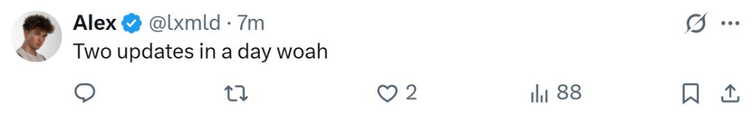 网友们感慨,更新速度太快了,昨天刚更新,今天又有新东西。甚至,最新的两次更新居然在 24 小时内发布!