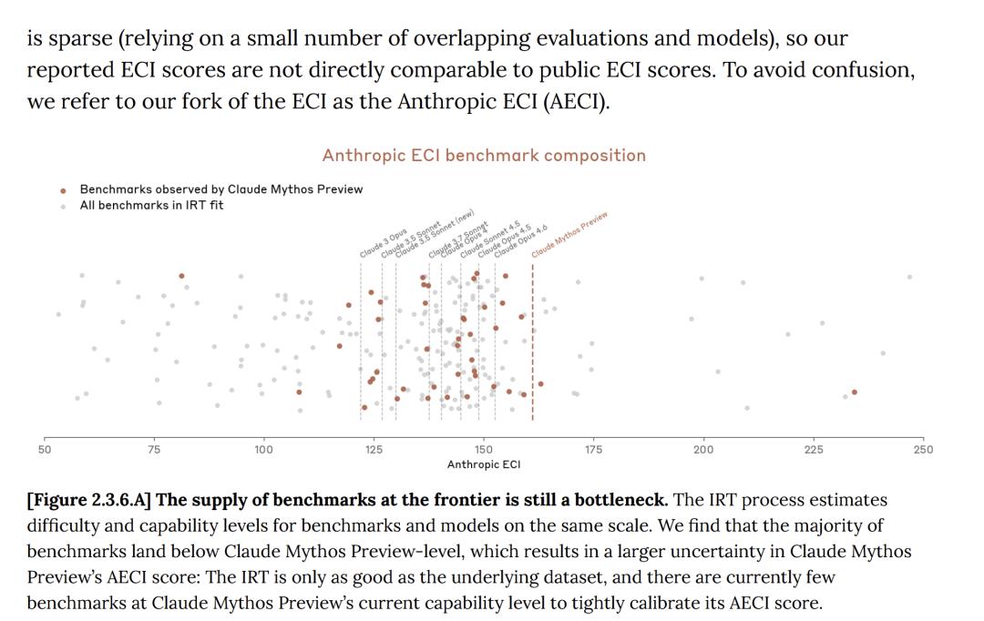 在系统卡中,Anthropic也承认:报告的Mythos等模型的ECI得分不确定性更大。
