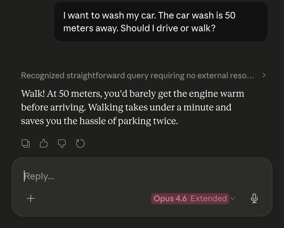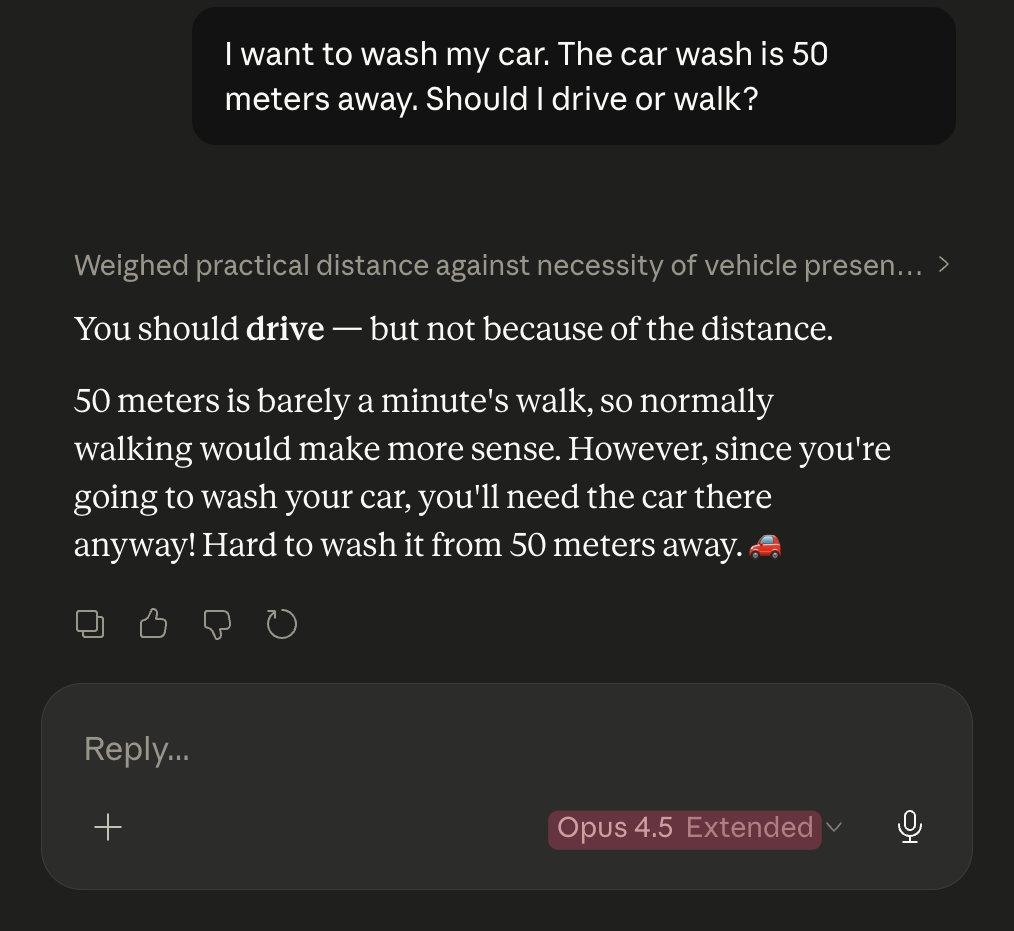 同样一道洗车难题,Opus 4.5竟打败了Opus 4.6。