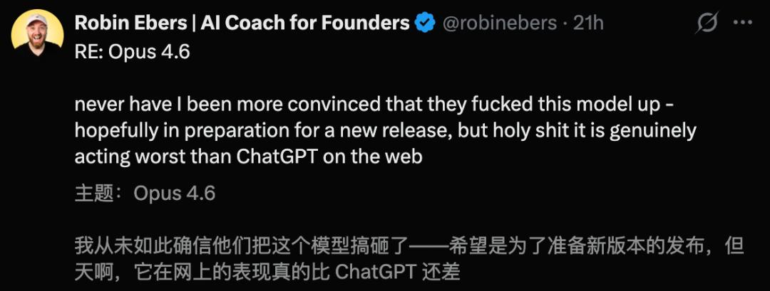 甚至,有人发现Opus 4.6连ChatGPT、Opus 4.5都不如。