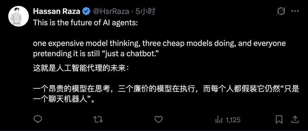 在常规的 AI agent 架构里,通常的做法是让最强的模型当指挥,把任务拆解成小块,分配给便宜的模型执行。强模型在上面管,弱模型在下面干,是一个自上而下的结构。