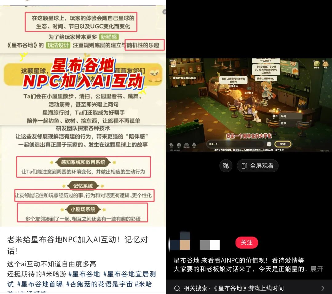 事实上,在米哈游生活模拟新作《星布谷地》的首次测试里,已经推出了可支持玩家自由文字对话的AI NPC。