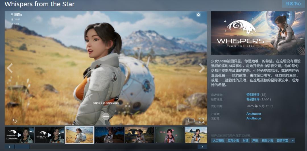 而从最开始试验性质的AI游戏《Whispers from the Star》,再到后来的AI聊天产品AnuNeko,再到如今的LPM 1.0,这个技术的进化进度肉眼可见。