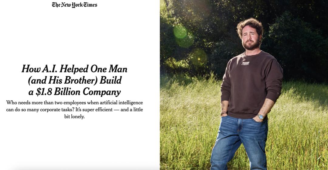 “世界首个十亿美元一人公司”,这应该是最容易让硅谷感到沸腾的AI致富故事。连Sam Altman都表示,很想见见这个人。