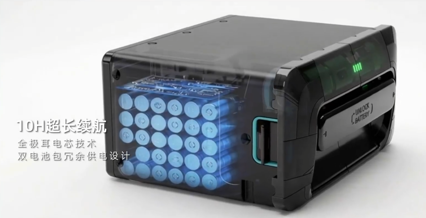 续航方面,远征 A3 搭载生态行业领先的全极耳电芯和双电池技术,标称续航可达 10 小时,刷新行业纪录;支持 10 秒快速换电,24 小时连续运行。