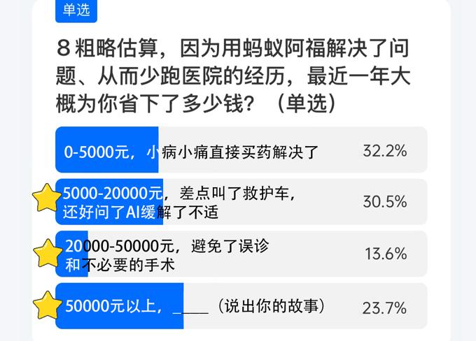 在土土的调研中,7成跟他一样用过蚂蚁阿福的留学生表示自己省下了看病钱,其中,近4成的人省下超2万元。