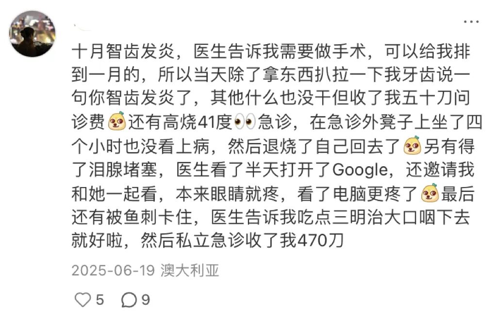 网友吐槽国外医疗,图源网络